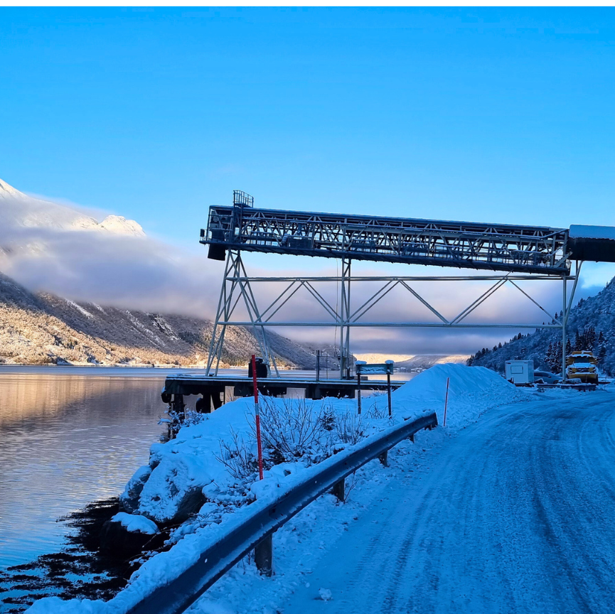 The capacity of the conveyor belt is 1,200–1,500 tonnes per hour.
